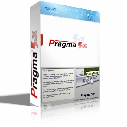 Pragma 5 — это многоязычная программа машинного перевода для перевода текстовых документов с одного языка на другой. Программа включает семь переводных словарей: английский, русский, украинский, немецкий, латышский, польский и французский. Pragma 5 выполняет перевод непосредственно в окне активного приложения или в отдельном окне быстрого перевода. С помощью программы можно переводить текстовую информацию, представленную в виде документов MS Word, Интернет страниц, почтовых сообщений, справок, а также содержимое различных текстовых окон. За счет автоматизации многих функций Pragma 5 очень проста в использовании.