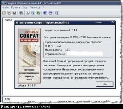 Сократ Персональный - система автоматического перевода с английского языка на русский и наоборот, предназначенная для работы со сравнительно небольшими текстами общей тематики.